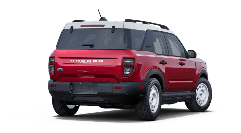 Ruby Red Metallic Tinted Clearcoat 2025 Ford Bronco Sport Heritage 4WD 8-Speed Automatic 1.5L EcoBoost Alloy Wheels, Aluminum Wheels, Bluetooth®, Backup Camera, Remote Start, Alloy wheels, Equipment Group 250A, Rear Parking Sensors, Wheels: 17 Oxford White-Painted Aluminum, 4-Wheel Disc Brakes, 6 Speakers, ABS brakes, Air Conditioning, AM/FM radio: SiriusXM, AM/FM Stereo, Auto High-beam Headlights, Automatic temperature control, Brake assist, Compass, Delay-off headlights, Driver door bin, Driver vanity mirror, Dual front impact airbags, Dual front side impact airbags, Electronic Stability Control, Emergency communication system: SYNC 4 911 Assist, Four wheel independent suspension, Front & Rear Floor Liners w/o Carpet Mats, Front anti-roll bar, Front Bucket Seats, Front Center Armrest, Front Driver/Passenger Seat Back Map Pockets, Front reading lights, Fully automatic headlights, Heated door mirrors, Illuminated entry, Knee airbag, Low tire pressure warning, Occupant sensing airbag, Outside temperature display, Overhead airbag, Overhead console, Panic alarm, Passenger door bin, Passenger vanity mirror, Plaid Cloth Front Bucket Seats, Power door mirrors, Power steering, Power windows, Radio data system, Rear anti-roll bar, Rear reading lights, Rear seat center armrest, Rear window defroster, Rear window wiper, Remote keyless entry, Security system, SiriusXM, Speed control, Speed-sensing steering, Speed-Sensitive Wipers, Split folding rear seat, Steering wheel mounted audio controls, SYNC 4 w/Enhanced Voice Recognition, Tachometer, Telescoping steering wheel, Tilt steering wheel, Traction control, Trip computer, Variably intermittent wipers, Alloy wheels, Equipment Group 250A, Rear Parking Sensors, Wheels: 17 Oxford White-Painted Aluminum.
