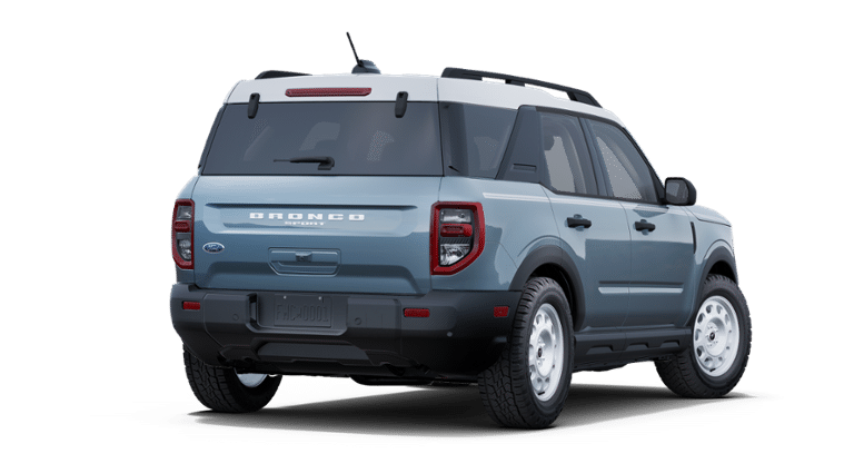 Azure Gray Metallic Tri-Coat 2025 Ford Bronco Sport Heritage 4WD 8-Speed Automatic 1.5L EcoBoost 4-Wheel Disc Brakes, 6 Speakers, ABS brakes, Air Conditioning, Alloy wheels, AM/FM radio: SiriusXM, AM/FM Stereo, Auto High-beam Headlights, Automatic temperature control, Brake assist, Compass, Delay-off headlights, Driver door bin, Driver vanity mirror, Dual front impact airbags, Dual front side impact airbags, Electronic Stability Control, Emergency communication system: SYNC 4 911 Assist, Equipment Group 250A, Four wheel independent suspension, Front & Rear Floor Liners w/o Carpet Mats, Front anti-roll bar, Front Bucket Seats, Front Center Armrest, Front Driver/Passenger Seat Back Map Pockets, Front reading lights, Fully automatic headlights, Heated door mirrors, Illuminated entry, Knee airbag, Low tire pressure warning, Occupant sensing airbag, Outside temperature display, Overhead airbag, Overhead console, Panic alarm, Passenger door bin, Passenger vanity mirror, Plaid Cloth Front Bucket Seats, Power door mirrors, Power steering, Power windows, Radio data system, Rear anti-roll bar, Rear Parking Sensors, Rear reading lights, Rear seat center armrest, Rear window defroster, Rear window wiper, Remote keyless entry, Security system, SiriusXM, Speed control, Speed-sensing steering, Speed-Sensitive Wipers, Split folding rear seat, Steering wheel mounted audio controls, SYNC 4 w/Enhanced Voice Recognition, Tachometer, Telescoping steering wheel, Tilt steering wheel, Traction control, Trip computer, Variably intermittent wipers, Wheels: 17 Oxford White-Painted Aluminum.
