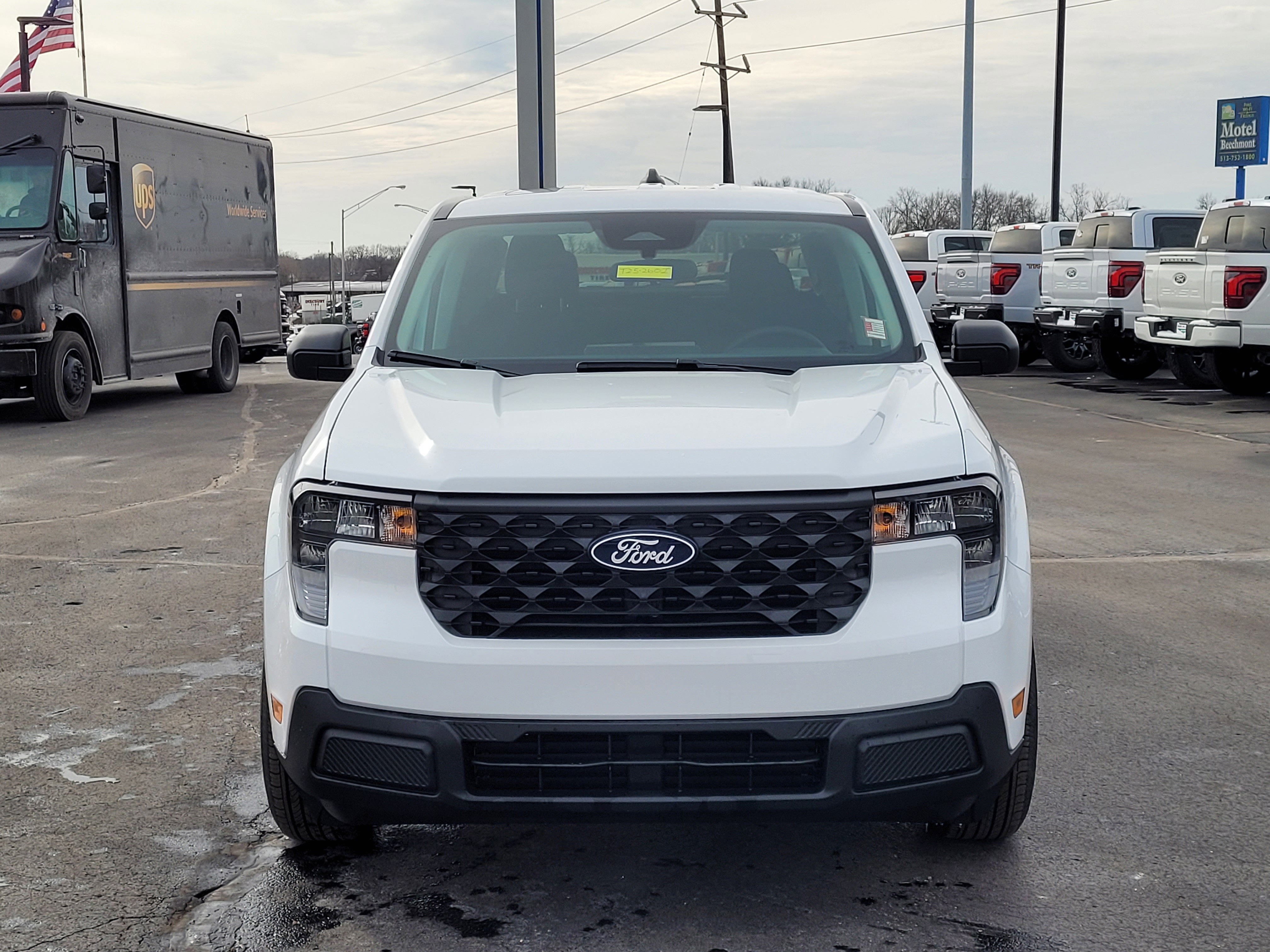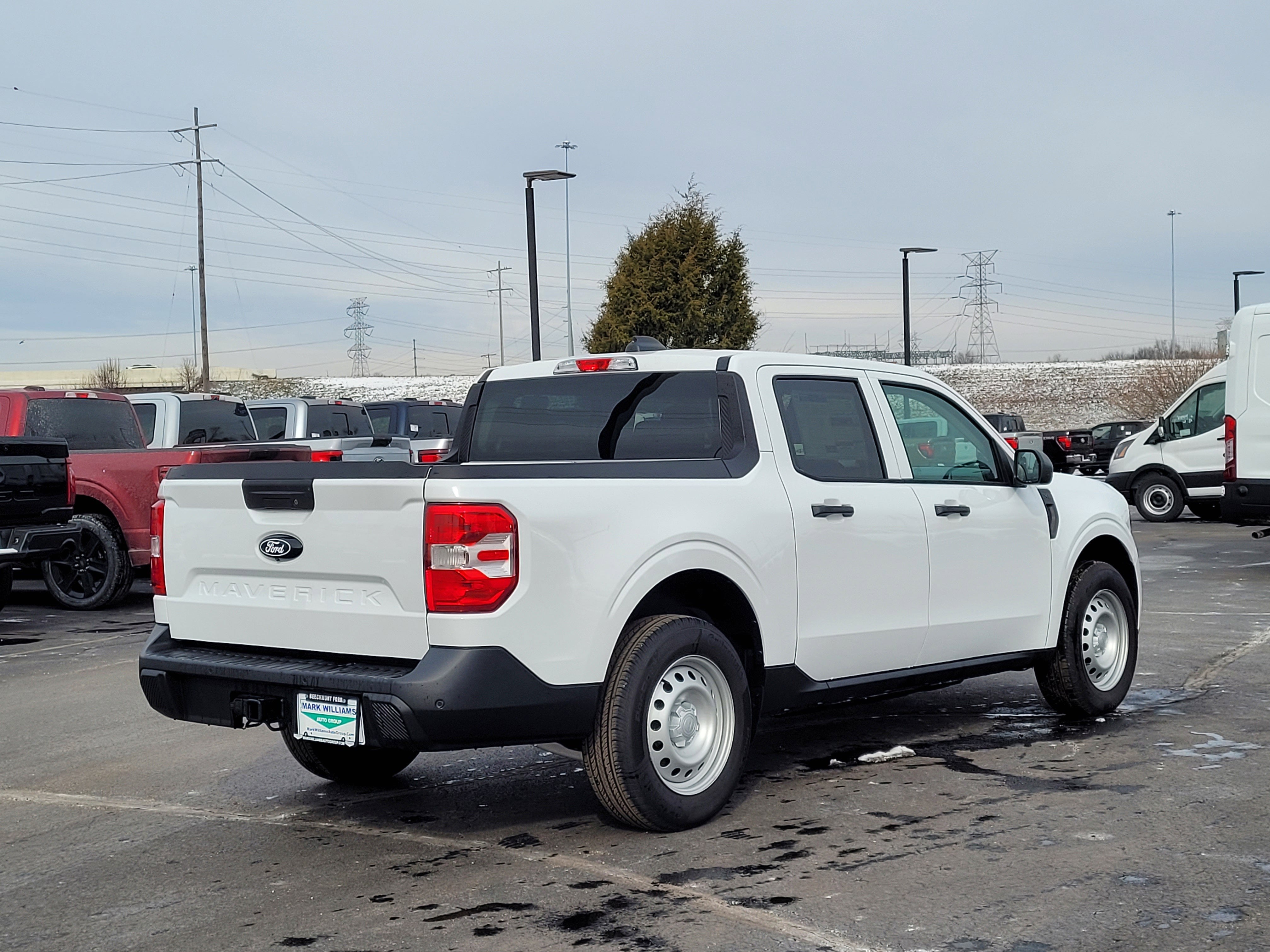 Oxford White 2025 Ford Maverick XL AWD CVT 2.5L I-4 Hybrid Bluetooth®, Backup Camera, Remote Start, Tow Package, 2.5L I-4 Hybrid, 4K Tow Package, Auto High Beams, BLIS w/Cross-Traffic Alert, Cross Traffic Brake Assist, Equipment Group 101A, Evasive Steering Assist, Exterior Parking Camera Rear, Ford Co-Pilot360 1.0, Intersection Assist, Lane-Keeping System, Power Glass Manual-Folding Mirrors, Pre-Collision Assist w/Automatic Emergency Braking, Rear Parking Sensors, Rear-View Camera, Trailer Brake Controller, Trailer Hitch (Class III) 2 Receiver, Transmission Oil Cooler, Upgraded Cooling Fan, Wheels: 17 Steel w/Sparkle Silver Painted Cover, 2.91 Axle Ratio, 4-Wheel Disc Brakes, 6 Speakers, ABS brakes, Air Conditioning, AM/FM radio: SiriusXM with 360L, Apple CarPlay/Android Auto, Auto High-beam Headlights, Automatic temperature control, Brake assist, Bumpers: body-color, Compass, Delay-off headlights, Driver door bin, Driver vanity mirror, Dual front impact airbags, Dual front side impact airbags, Electronic Stability Control, Emergency communication system: SYNC 4 911 Assist, Four wheel independent suspension, Front anti-roll bar, Front Bucket Seats, Front Center Armrest, Front Cloth Bucket Seats, Front reading lights, Fully automatic headlights, Illuminated entry, Knee airbag, Low tire pressure warning, Occupant sensing airbag, Outside temperature display, Overhead airbag, Overhead console, Panic alarm, Passenger door bin, Passenger vanity mirror, Power steering, Power windows, Radio data system, Radio: AM/FM Stereo w/6 Speakers, Rear anti-roll bar, Rear step bumper, Remote keyless entry, SiriusXM w/360L, Speed control, Speed-sensing steering, Steering wheel mounted audio controls, SYNC 4 w/Enhanced Voice Recognition, Telescoping steering wheel, Tilt steering wheel, Traction control, Trip computer, 2.5L I-4 Hybrid, 4K Tow Package, Auto High Beams, BLIS w/Cross-Traffic Alert, Cross Traffic Brake Assist, Equipment Group 101A, Evasive Steering Assist, Exterior Parking Camera Rear, Ford Co-Pilot360 1.0, Intersection Assist, Lane-Keeping System, Power Glass Manual-Folding Mirrors, Pre-Collision Assist w/Automatic Emergency Braking, Rear Parking Sensors, Rear-View Camera, Trailer Brake Controller, Trailer Hitch (Class III) 2 Receiver, Transmission Oil Cooler, Upgraded Cooling Fan, Wheels: 17 Steel w/Sparkle Silver Painted Cover.