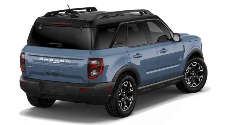 Azure Gray Metallic Tri-Coat 2026 Ford Bronco Sport Outer Banks 4WD 8-Speed Automatic 1.5L EcoBoost 4-Wheel Disc Brakes, 6 Speakers, ABS brakes, Air Conditioning, Alloy wheels, AM/FM radio: SiriusXM with 360L, AM/FM Stereo, Apple CarPlay/Android Auto, Auto High-beam Headlights, Auto-dimming Rear-View mirror, Automatic temperature control, Brake assist, Compass, Delay-off headlights, Driver door bin, Driver vanity mirror, Dual front impact airbags, Dual front side impact airbags, Electronic Stability Control, Emergency communication system: SYNC 4 911 Assist, Equipment Group 300A Standard Package, Exterior Parking Camera Rear, Ford Connectivity Package (1-Year Included), Four wheel independent suspension, Front and Rear Floor Liners Without Carpet Mats, Front anti-roll bar, Front Bucket Seats, Front Center Armrest, Front Driver/Passenger Seat Back Map Pockets, Front dual zone A/C, Front fog lights, Front reading lights, Fully automatic headlights, Heated door mirrors, Heated front seats, Heated steering wheel, Illuminated entry, Internet access capable: 5G Modem - Ford Connectivity Package, Knee airbag, Low tire pressure warning, Memory seat, Occupant sensing airbag, Outside temperature display, Overhead airbag, Overhead console, Panic alarm, Passenger door bin, Passenger vanity mirror, Power door mirrors, Power driver seat, Power passenger seat, Power steering, Power windows, Premium Trimmed Heated Front Sport Contour Bucket Seats, Radio data system, Rear anti-roll bar, Rear Parking Sensors, Rear reading lights, Rear seat center armrest, Rear window defroster, Rear window wiper, Remote keyless entry, Security system, SiriusXM with 360L, Speed control, Speed-sensing steering, Speed-Sensitive Wipers, Split folding rear seat, Steering wheel mounted audio controls, SYNC 4 with Enhanced Voice Recognition, Tachometer, Telescoping steering wheel, Tilt steering wheel, Traction control, Trip computer, Variably intermittent wipers, Wheels: 18 Ebony Black.