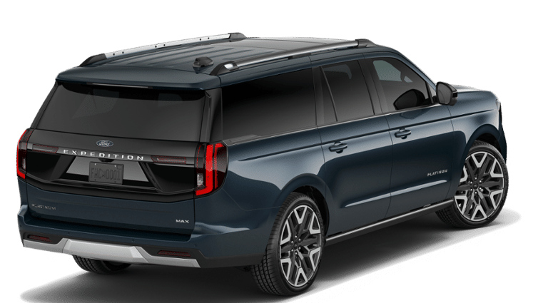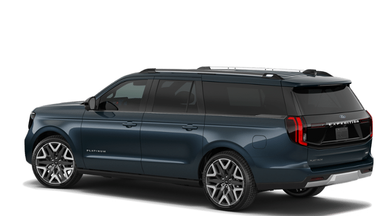 Blue Metallic 2026 Ford Expedition Max Platinum 4WD 10-Speed Automatic 3.5L V6 EcoBoost High Output 10 Speakers, 2nd Row Power-Folding Captain's Chairs, 3.73 Axle Ratio, 3rd row seats: split-bench, 4-Wheel Disc Brakes, ABS brakes, Air Conditioning, Alloy wheels, AM/FM radio: SiriusXM with 360L, Apple CarPlay/Android Auto, Auto High-beam Headlights, Auto-dimming door mirrors, Auto-dimming Rear-View mirror, Automatic temperature control, Brake assist, Bumpers: body-color, Compass, Delay-off headlights, Driver door bin, Driver vanity mirror, Dual front impact airbags, Dual front side impact airbags, Electronic Stability Control, Emergency communication system: 911 Assist, Exterior Parking Camera Rear, Ford Connectivity Package (1-Year Included), Ford Digital Experience, Four wheel independent suspension, Front anti-roll bar, Front Bucket Seats, Front Center Armrest, Front dual zone A/C, Front reading lights, Fully automatic headlights, Garage door transmitter, Genuine wood dashboard insert, Genuine wood door panel insert, Heated and Ventilated Leather Front Captain's Chairs, Heated door mirrors, Heated front seats, Heated rear seats, Heated steering wheel, Illuminated entry, Leather steering wheel, Low tire pressure warning, Memory seat, Navigation System, Occupant sensing airbag, Outside temperature display, Overhead airbag, Overhead console, Panic alarm, Passenger door bin, Passenger vanity mirror, Power door mirrors, Power driver seat, Power moonroof: Vista Roof, Power passenger seat, Power steering, Power windows, Radio data system, Radio: B&O Sound System by Bang and Olufsen, Rain sensing wipers, Rear air conditioning, Rear anti-roll bar, Rear reading lights, Rear window defroster, Rear window wiper, Reclining 3rd row seat, Remote keyless entry, Security system, SiriusXM with 360L, Speed control, Speed-sensing steering, Speed-Sensitive Wipers, Split folding rear seat, Spoiler, Steering wheel memory, Steering wheel mounted audio controls, Tachometer, Telescoping steering wheel, Tilt steering wheel, Traction control, Trip computer, Turn signal indicator mirrors, Variably intermittent wipers, Ventilated front seats, Voltmeter, Wheels: 20 x 8.5 Ebony Bright Machined Aluminum.