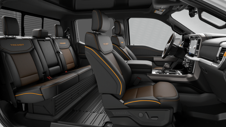 Oxford White 2026 Ford F-150 Tremor 4WD 10-Speed Automatic 5.0L V8 4WD, 2nd Row Heated Seats, 4 Pickup Box Tie-Down Plates, 4-Wheel Disc Brakes, 8 Speakers, ABS brakes, Adjustable pedals, Air Conditioning, Alloy wheels, AM/FM radio: SiriusXM with 360L, Auto High-beam Headlights, Auto-Dimming Rear-View Mirror, Auto-dimming Rear-View mirror, Automatic temperature control, Bed Utility Package, Brake assist, Bumpers: body-color, Compass, Console Worksurface, Delay-off headlights, Driver door bin, Driver vanity mirror, Dual front impact airbags, Dual front side impact airbags, Electronic Locking with 3.73 Axle Ratio, Electronic Stability Control, Emergency communication system: SYNC 4 911 Assist, Equipment Group 402A High, Ford Connectivity Package (1-Year Included), Front anti-roll bar, Front Axle with Torsen Differential, Front Bucket Seats, Front Center Armrest, Front dual zone A/C, Front fog lights, Front reading lights, Front wheel independent suspension, Fully automatic headlights, GVWR: 7,050 lbs Payload Package, Head-Up Display, Heated door mirrors, Heated front seats, Heated Steering Wheel, Illuminated entry, Integrated Trailer Brake Controller, Internet access capable: 5G Modem - Ford Connectivity Package, LED Box Lighting, LED Taillamps, Low tire pressure warning, Media Bin Door, Mobile Office Package, Modular Front Bumper and Carbon Black Rear Bumper, Navigation system: Connected Navigation, Occupant sensing airbag, Outside temperature display, Overhead airbag, Overhead console, Panic alarm, Partitioned Lockable Rear Storage, Passenger door bin, Passenger vanity mirror, Power door mirrors, Power driver seat, Power Glass Heated Sideview Mirrors, Power passenger seat, Power steering, Power Tailgate, Power windows, Power-Adjustable Pedals with Memory, Radio data system, Radio: B&O Sound System by Bang and Olufsen, Radio: B&O Unleashed Sound System by Bang & Olufsen, Rain-Sensing Wipers, Rear reading lights, Rear step bumper, Rear window defroster, Remote keyless entry, Security system, Speed control, Split folding rear seat, Steering wheel mounted audio controls, SYNC 4 with Enhanced Voice Recognition, Tachometer, Tailgate Step with Work Surface, Telescoping steering wheel, Tilt steering wheel, Tow/Haul Package, Traction control, Tray Style Floor Liner with Carpet Mats, Trip computer, Turn signal indicator mirrors, Twin Panel Moonroof, Unique Sport Cloth 40/Console/40 Power Front Seat, Unique Tremor Leather-Trimmed Seats, Universal Garage Door Opener, Variably intermittent wipers, Wheels: 18 Alloy with Dark Matte Finish, Wireless Charging, 4WD.