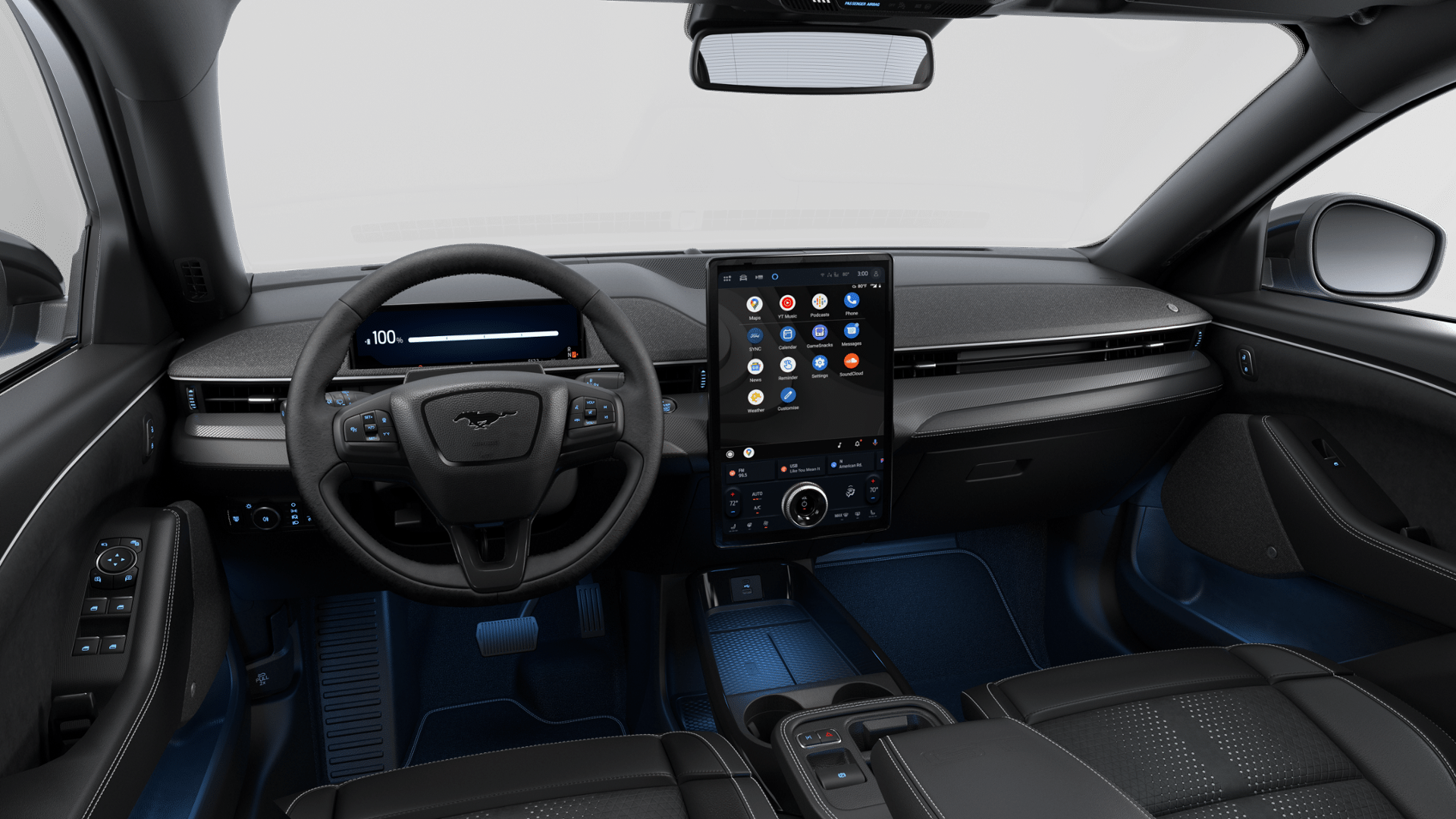Velocity Blue Metallic 2026 Ford Mustang Mach-E GT AWD Single-Speed Automatic Dual Electric Motor Alloy Wheels, Aluminum Wheels, Bluetooth®, Leather Seats, Navigation System, Backup Camera, Remote Start, Alloy wheels, Apple CarPlay/Android Auto, Auto High-beam Headlights, Connected Navigation, Equipment Group 400A Standard Package, Heated front seats, Heated Perforated ActiveX Performance Seats, Memory seat, Mobile Power Cord (120V/240V), NACS Fast Charging Adapter, Navigation system: Connected Navigation, Power driver seat, Power passenger seat, Radio: B&O Sound System by Bang and Olufsen, Rain sensing wipers, SiriusXM with 360L, SYNC 4A with Enhanced Voice Recognition, Wheels: 20 Monochromatic High Gloss Black-Painted, 10 Speakers, 4-Wheel Disc Brakes, ABS brakes, Air Conditioning, AM/FM radio: SiriusXM with 360L, Auto-dimming Rear-View mirror, Automatic temperature control, Brake assist, Bumpers: body-color, Compass, Delay-off headlights, Driver door bin, Driver vanity mirror, Dual front impact airbags, Dual front side impact airbags, Electronic Stability Control, Emergency communication system: 911 Assist, Exterior Parking Camera Rear, Four wheel independent suspension, Front anti-roll bar, Front Bucket Seats, Front Center Armrest, Front dual zone A/C, Front reading lights, Fully automatic headlights, Garage door transmitter, Heated door mirrors, Heated steering wheel, Illuminated entry, Knee airbag, Low tire pressure warning, Occupant sensing airbag, Outside temperature display, Overhead airbag, Overhead console, Panic alarm, Passenger door bin, Passenger vanity mirror, Power door mirrors, Power Liftgate, Power steering, Power windows, Radio data system, Rear anti-roll bar, Rear seat center armrest, Rear side impact airbag, Rear window defroster, Rear window wiper, Remote keyless entry, Security system, Speed control, Speed-sensing steering, Speed-Sensitive Wipers, Split folding rear seat, Spoiler, Steering wheel mounted audio controls, Telescoping steering wheel, Tilt steering wheel, Traction control, Trip computer, Turn signal indicator mirrors, Variably intermittent wipers, Alloy wheels, Apple CarPlay/Android Auto, Auto High-beam Headlights, Connected Navigation, Equipment Group 400A Standard Package, Heated front seats, Heated Perforated ActiveX Performance Seats, Memory seat, Mobile Power Cord (120V/240V), NACS Fast Charging Adapter, Navigation system: Connected Navigation, Power driver seat, Power passenger seat, Radio: B&O Sound System by Bang and Olufsen, Rain sensing wipers, SiriusXM with 360L, SYNC 4A with Enhanced Voice Recognition, Wheels: 20 Monochromatic High Gloss Black-Painted.