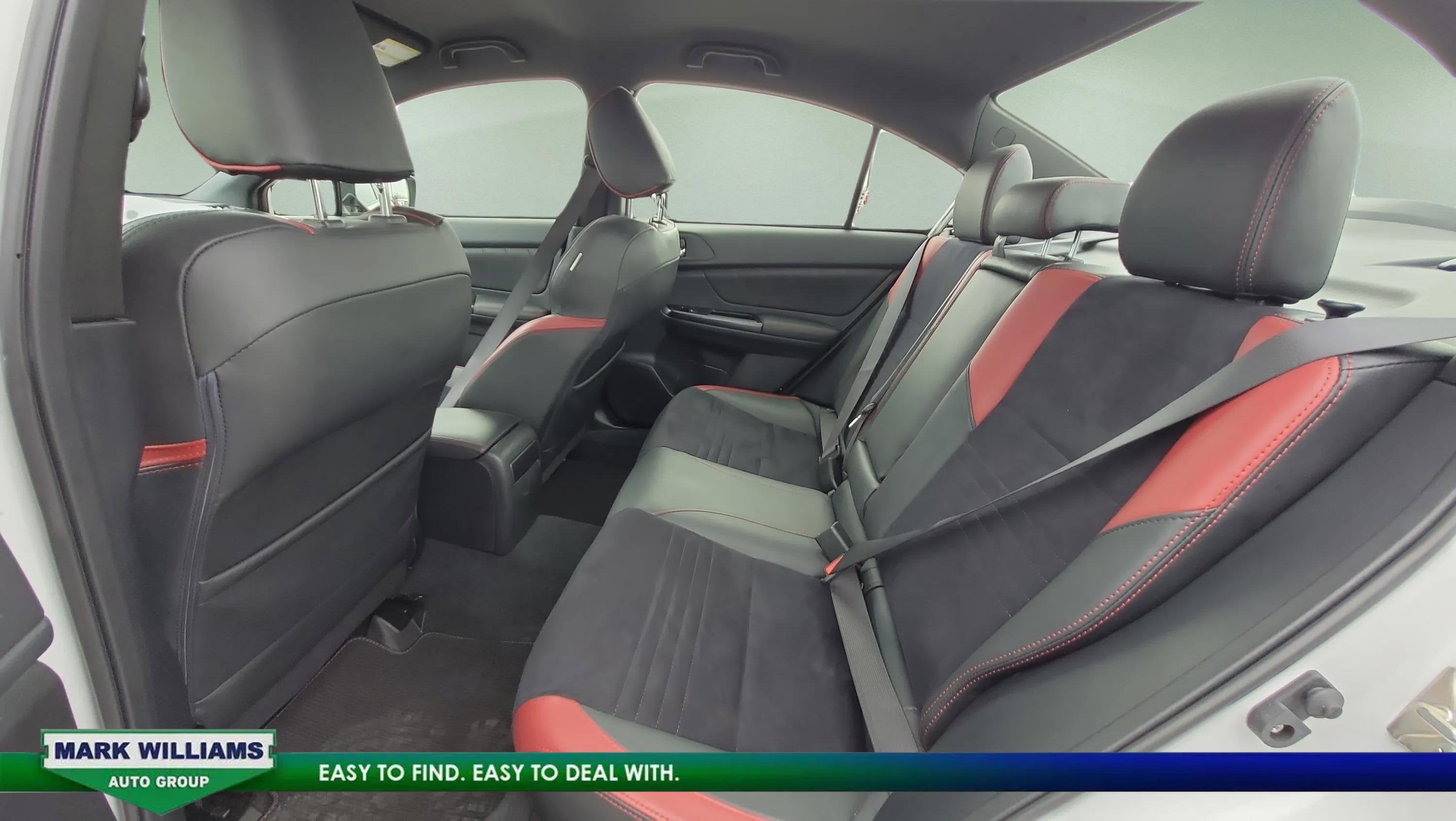This WRX is equipped with electronic stability control, traction control, ABS brakes, multiple airbags, tire pressure monitoring, brake assist, heated door mirrors, remote keyless entry, and steering wheel–mounted audio controls.