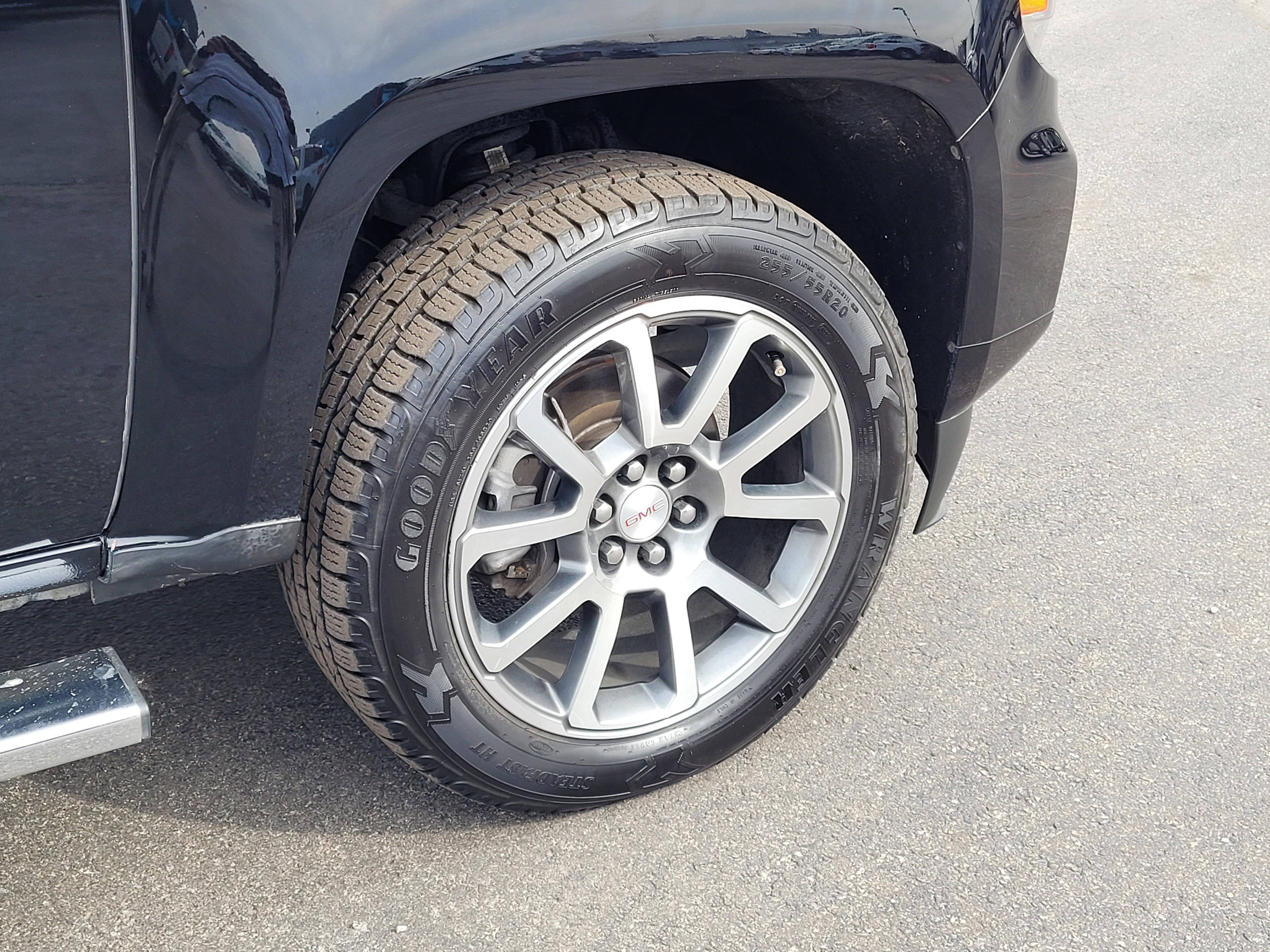 This Canyon Denali is also purpose-built for towing and utility. The Trailering Package with Tow/Haul Mode and Hitch Guidance makes hauling easy and controlled, while the black spray-on bedliner with GMC logo protects the bed for long-term use. Exterior upgrades such as 20-inch diamond-cut machined aluminum wheels, polished exhaust tip, and 5-inch chrome assist steps complete the upscale Denali appearance.