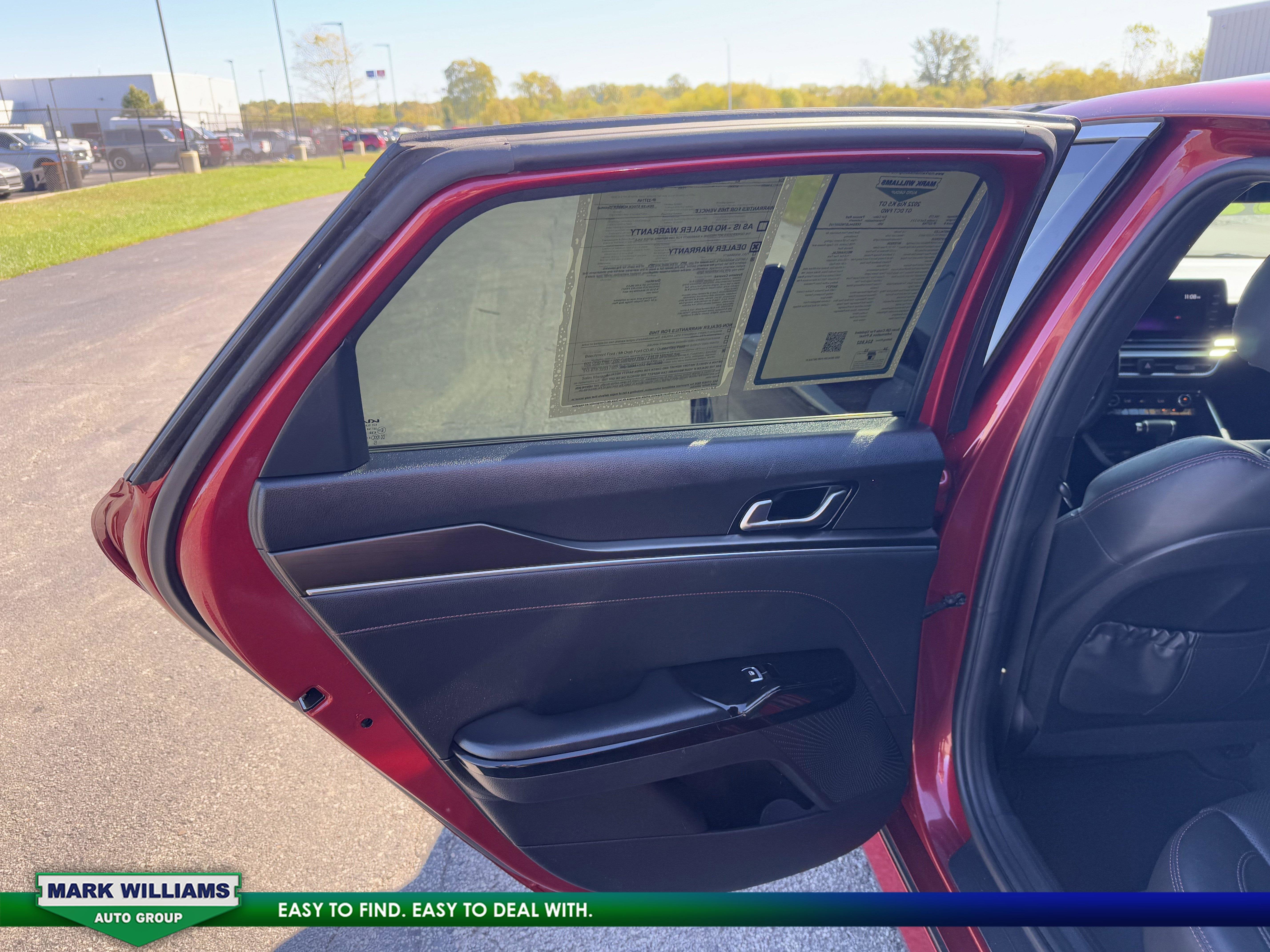 Mark Williams Auto Group is proud to present you with another True Market Priced Pre-Owned Vehicle. This 2022 Kia K5 GT is loaded with the following Factory Options:GT1 Package (10-Way Power Passenger Seat, Active Sound Design, Auto Up/Down Rear Windows, Bose Premium Audio, Heated Steering Wheel, Leather-Wrapped Gear Shift Knob, LED Projection Headlights, Memory Driver's Seat & Outside Mirrors, Navigation-Based Smart Cruise Control - Curve, Parking Collision Avoidance-Assist - Reverse, Parking Distance Warning - Forward & Reverse, Power Child Lock, Power Folding Outside Mirrors, Safe Exit Assist w/Lock, Surround View Monitor, and Ventilated Front Seats), 4-Wheel Disc Brakes, 6 Speakers, ABS brakes, Air Conditioning, Alloy wheels, AM/FM radio: SiriusXM, Apple CarPlay & Android Auto, Auto High-beam Headlights, Automatic temperature control, Brake assist, Bumpers: body-color, Carpeted Floor Mats, Delay-off headlights, Driver door bin, Driver vanity mirror, Dual front impact airbags, Dual front side impact airbags, EC Mirror w/Homelink, Electronic Stability Control, Emergency communication system: UVO eServices, Four wheel independent suspension, Front anti-roll bar, Front Bucket Seats, Front Center Armrest, Front dual zone A/C, Front fog lights, Front reading lights, Fully automatic headlights, Heated door mirrors, Heated front seats, Heated Sport Bucket Seats, Illuminated entry, Knee airbag, Leatherette Seat Trim, Low tire pressure warning, Navigation System, Occupant sensing airbag, Outside temperature display, Overhead airbag, Overhead console, Panic alarm, Passenger door bin, Passenger vanity mirror, Power door mirrors, Power driver seat, Power moonroof, Power steering, Power windows, Radio data system, Radio: AM/FM/MP3 Audio System, Rear anti-roll bar, Rear reading lights, Rear seat center armrest, Rear side impact airbag, Rear window defroster, Remote keyless entry, Security system, Smart Key w/ Push Button and Remote Start, Speed control, Speed-sensing steering, Split folding rear seat, Spoiler, Sport steering wheel, Steering wheel mounted audio controls, Tachometer, Telescoping steering wheel, Tilt steering wheel, Traction control, Trip computer, Turn signal indicator mirrors, Variably intermittent wipers, and Wheels: 8.0J x 19 Gloss Black Machined Finish Alloy. Priced below KBB Fair Purchase Price!