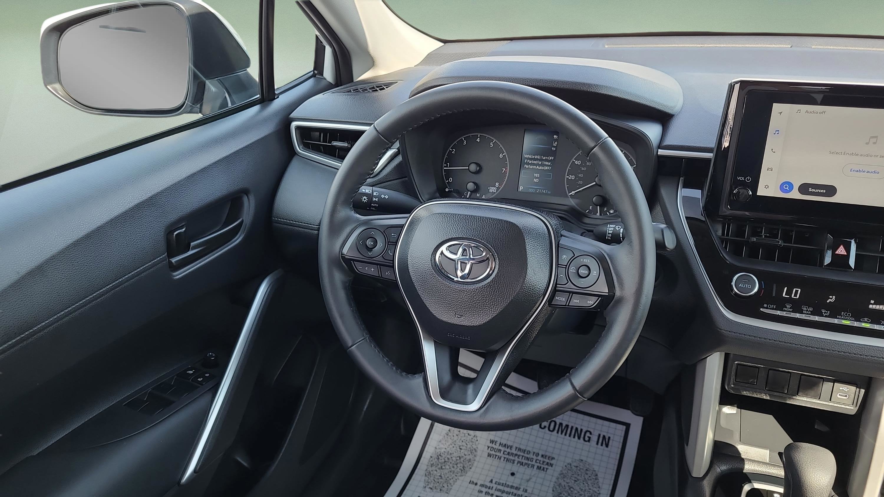 **ONE OWNER***, **CLEAN AUTOCHECK VEHICLE HISTORY REPORT**, Alloy Wheels, Aluminum Wheels, Bluetooth®, Backup Camera, Corolla Cross LE, 4D Sport Utility, 2.0L I4 PDI DOHC 16V LEV3-SULEV30 169hp, CVT, AWD, Pearl, Black w/Fabric Seat Trim, 17 Silver Alloy Wheels, 4-Wheel Disc Brakes, 4.014 Axle Ratio, 6 Speakers, ABS brakes, Air Conditioning, Alloy wheels, AM/FM radio: SiriusXM, Auto High-beam Headlights, Automatic temperature control, Brake assist, Bumpers: body-color, Delay-off headlights, Driver door bin, Driver vanity mirror, Dual front impact airbags, Dual front side impact airbags, Electronic Stability Control, Emergency communication system: Safety Connect (10-year trial), Exterior Parking Camera Rear, Fabric Seat Trim, Four wheel independent suspension, Front anti-roll bar, Front Bucket Seats, Front Center Armrest, Front reading lights, Fully automatic headlights, Heated door mirrors, Illuminated entry, Knee airbag, Leather steering wheel, Low tire pressure warning, Occupant sensing airbag, Outside temperature display, Overhead airbag, Panic alarm, Passenger door bin, Passenger vanity mirror, Power door mirrors, Power steering, Power windows, Radio data system, Radio: 8 Touch-Screen Display Audio, Rear anti-roll bar, Rear side impact airbag, Rear window defroster, Rear window wiper, Remote keyless entry, Speed control, Split folding rear seat, Spoiler, Steering wheel mounted audio controls, Tachometer, Telescoping steering wheel, Tilt steering wheel, Traction control, Trip computer, Turn signal indicator mirrors, Variably intermittent wipers, Corolla Cross LE, 4D Sport Utility, 2.0L I4 PDI DOHC 16V LEV3-SULEV30 169hp, CVT, AWD, Pearl, Black w/Fabric Seat Trim, 17 Silver Alloy Wheels.
